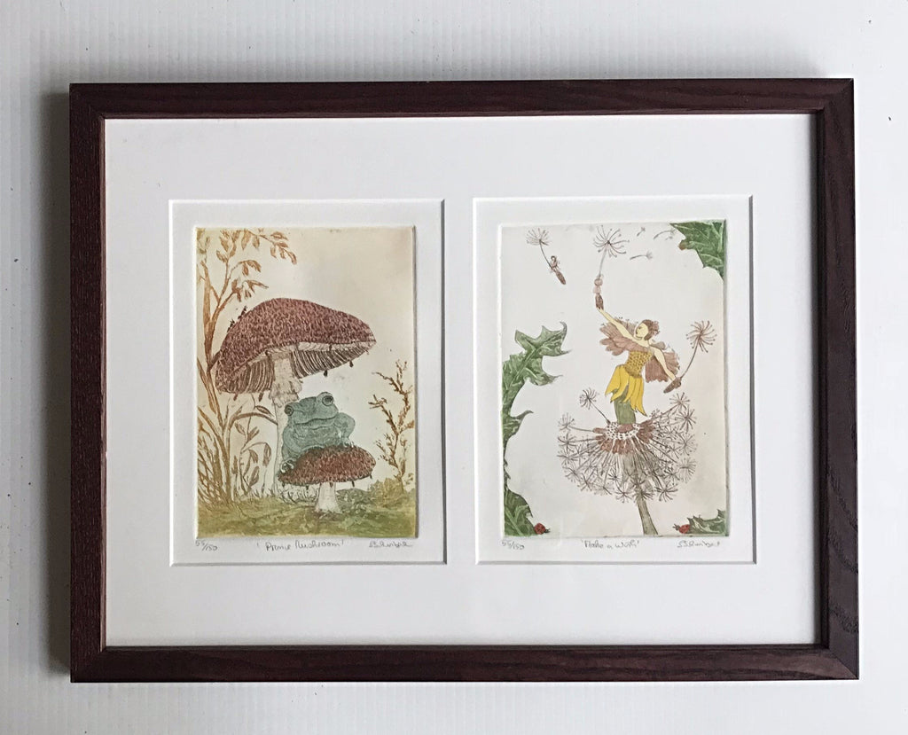 framed 12x16 Make a Wish - Dandelion Fairy - Frog on mushroom