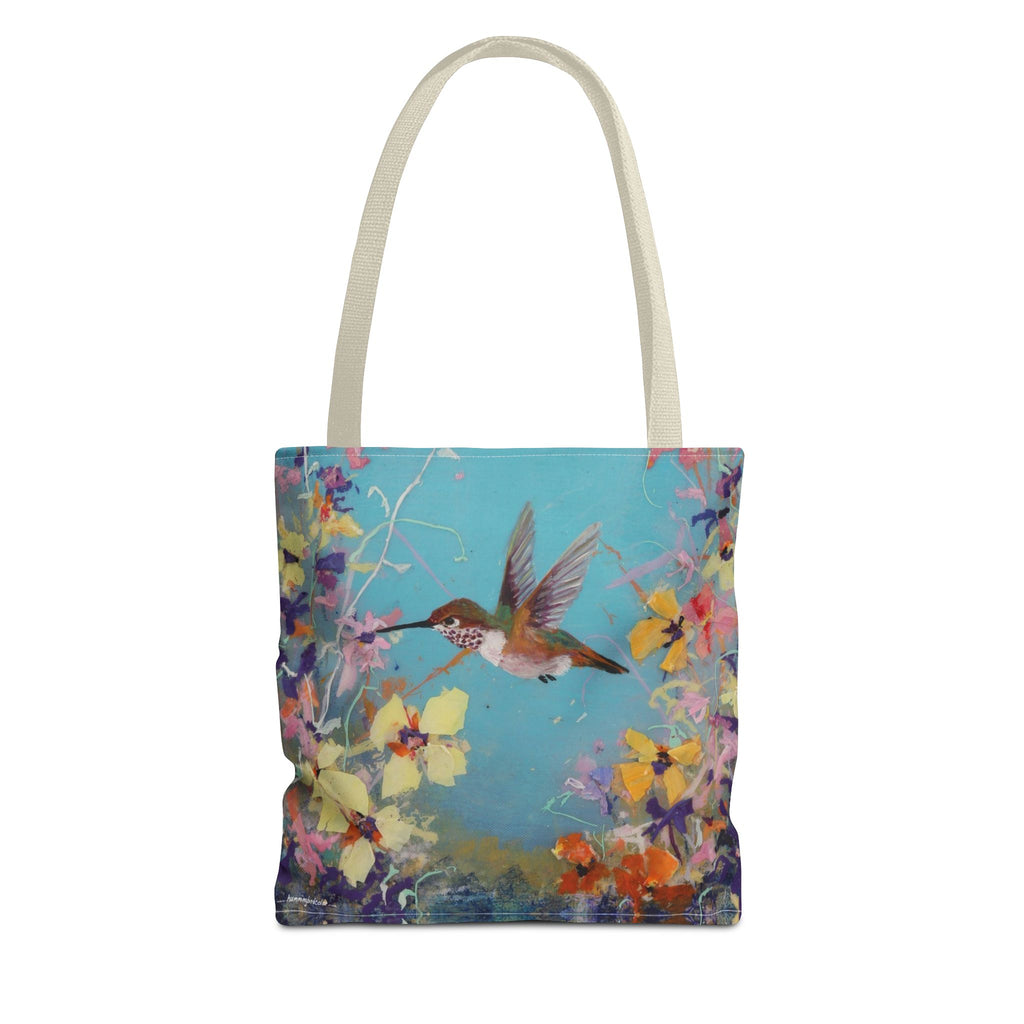 Floral Hummingbird Tote Bag: Happy Hummer, Eco-Friendly Shopper, Beach Bag, Gift for Her, Nature Lover, Summer Essentials